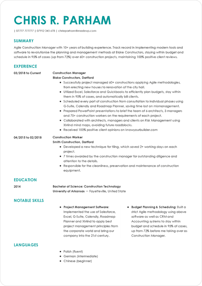 Make sure your resume is tidy and easy to follow. We’ll check if the layout properly highlights your key achievements and if you’ve added a professional summary to introduce yourself as a candidate.